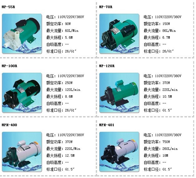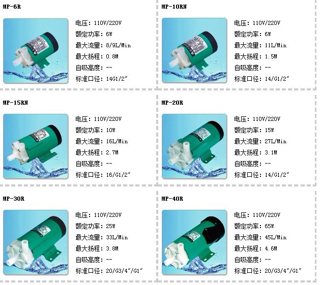 ●MP系列磁力循環(huán)驅(qū)動泵因其結(jié)構(gòu)小巧,非常適合用作照相沖洗設(shè)備和其它裝置的OEM產(chǎn)品。有軟管、螺紋等連接接口適合各種工業(yè)系統(tǒng)和程序上使用。泵體材料采用玻璃纖維增強聚丙烯及高鋁陶瓷,大部分的化學(xué)液體均可安全輸送。泵體組件模塊化,使維修保養(yǎng)較為容易。