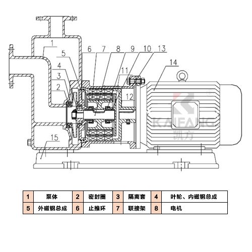 1.泵軸由動密封變成封閉式靜密封,徹底避免了介質泄漏。2.自吸磁力泵無需獨立潤滑和冷卻水,降低了能耗。3.由聯(lián)軸器傳動變成同步拖動,不存在接觸和摩擦。功耗小、效率高,且具有阻尼減振作用,減少了電動機振動對泵的影響和泵發(fā)生氣蝕振動時對電動機的影響。4.自吸磁力泵過載時,內、外磁轉子相對滑脫,對電機、泵有保護作用。